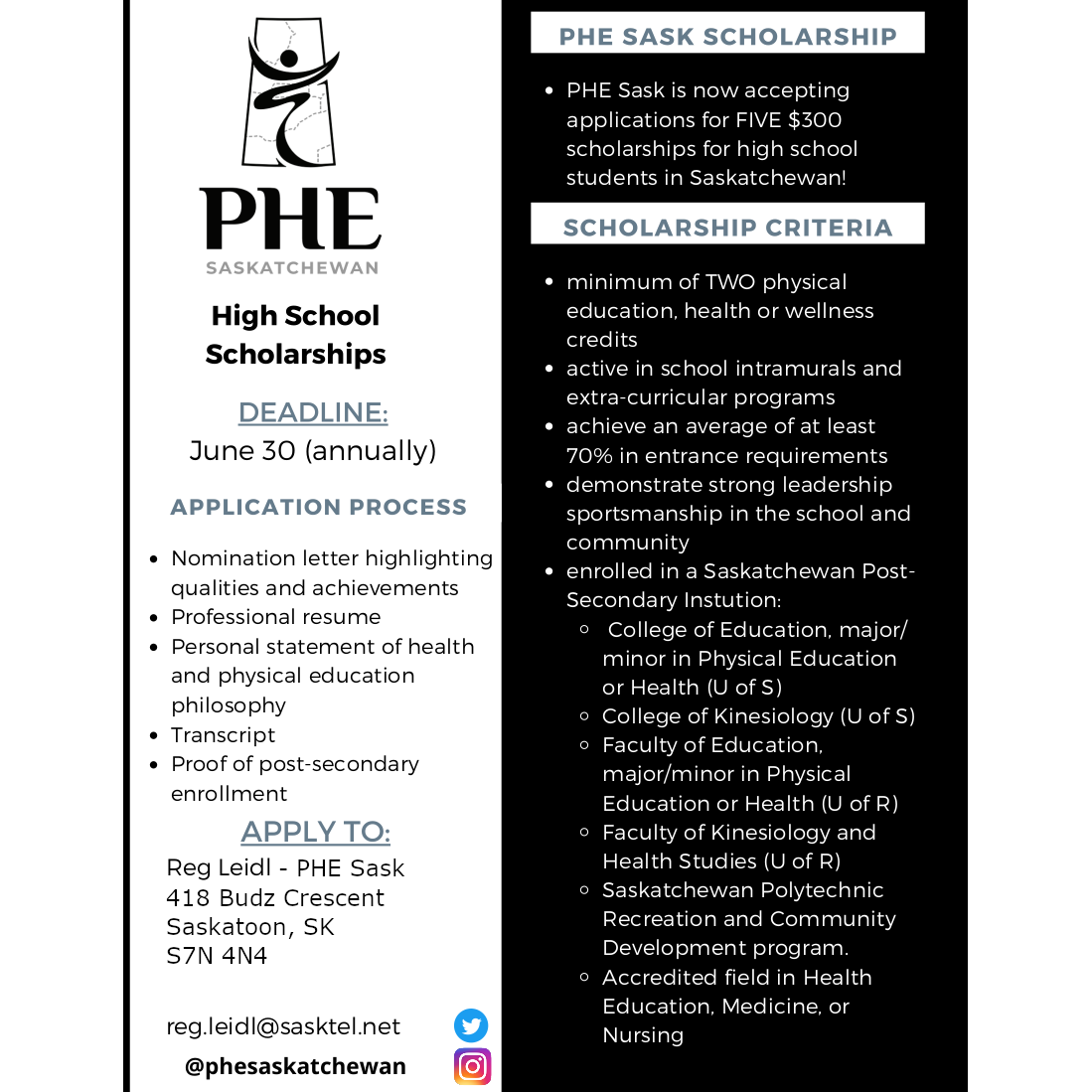 Physical Educator of the Year for Saskatchewan Nomination Criteria